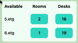 - Overview shows only available rooms and desks on the selected floors.