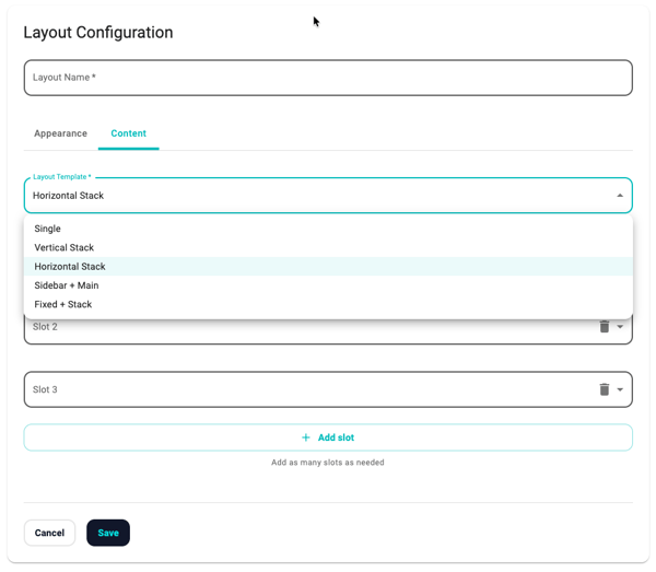The most important choice is between a Single, Horizontal, or Vertical stack. This controls how your selected sources are arranged in the Layout.