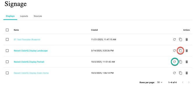To copy the public URL for a Display, click the icon marked with the red circle.