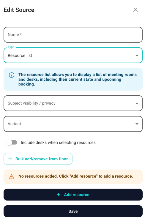 You can now configure various information sources, with the primary ones being the Resource List and the Floorplan.