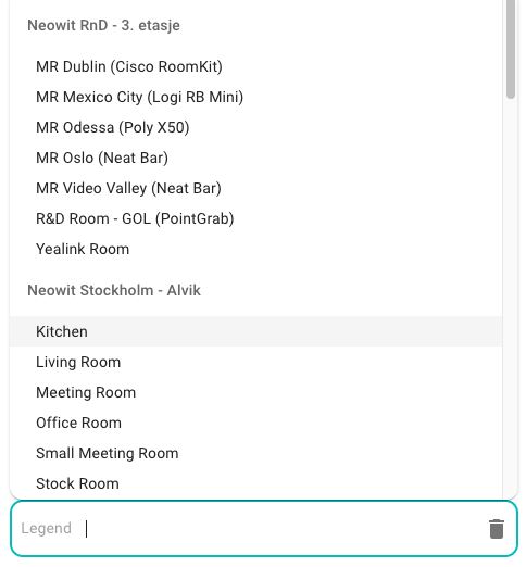 We recommend starting the process by configuring resource lists. These are the resources for which you want to display the occupation and calendar status, and/or their location on a floor plan.